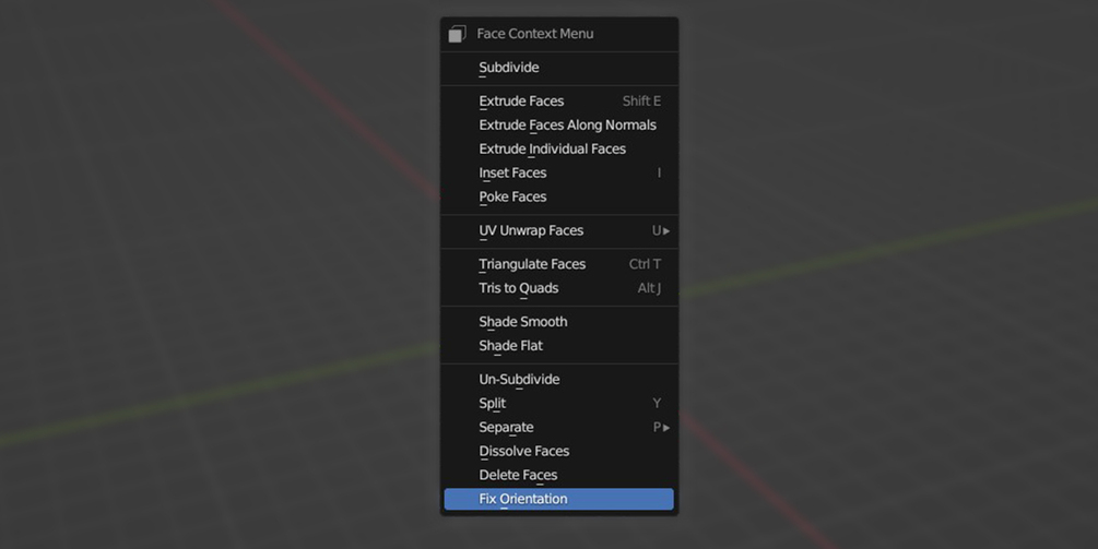 In edit mode, simply locate and select at least one face that aligns vertically with your mesh. For more complicated meshes, you have the flexibility to choose multiple faces. Once selected, just right-click and select Fix Orientation and watch as our tool smoothly adjusts the orientation for you. It's that simple!